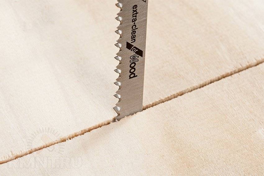 Также пилы для чистого реза отличаются практически полным отсутствием разводки и противоположным направлением заточки соседних зубьев. Чтобы при малой разводке обеспечить возможность фигурного реза, пилки имеют очень маленькую ширину, из-за чего становятся достаточно хрупкими.
