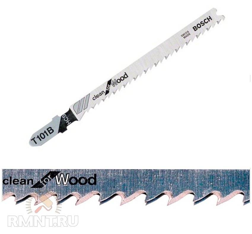 Пильные полотна для лобзика более разнообразны. Для реза без сколов применяются серии пилок-чисторезов, например у BOSCH имеется линейка полотен с названием CleanWood. Главное их отличие — малый размер и отсутствие выраженной направленности зубьев. Они, как правило, имеют форму равнобедренного треугольника и осуществляют рез в обоих направлениях движения.