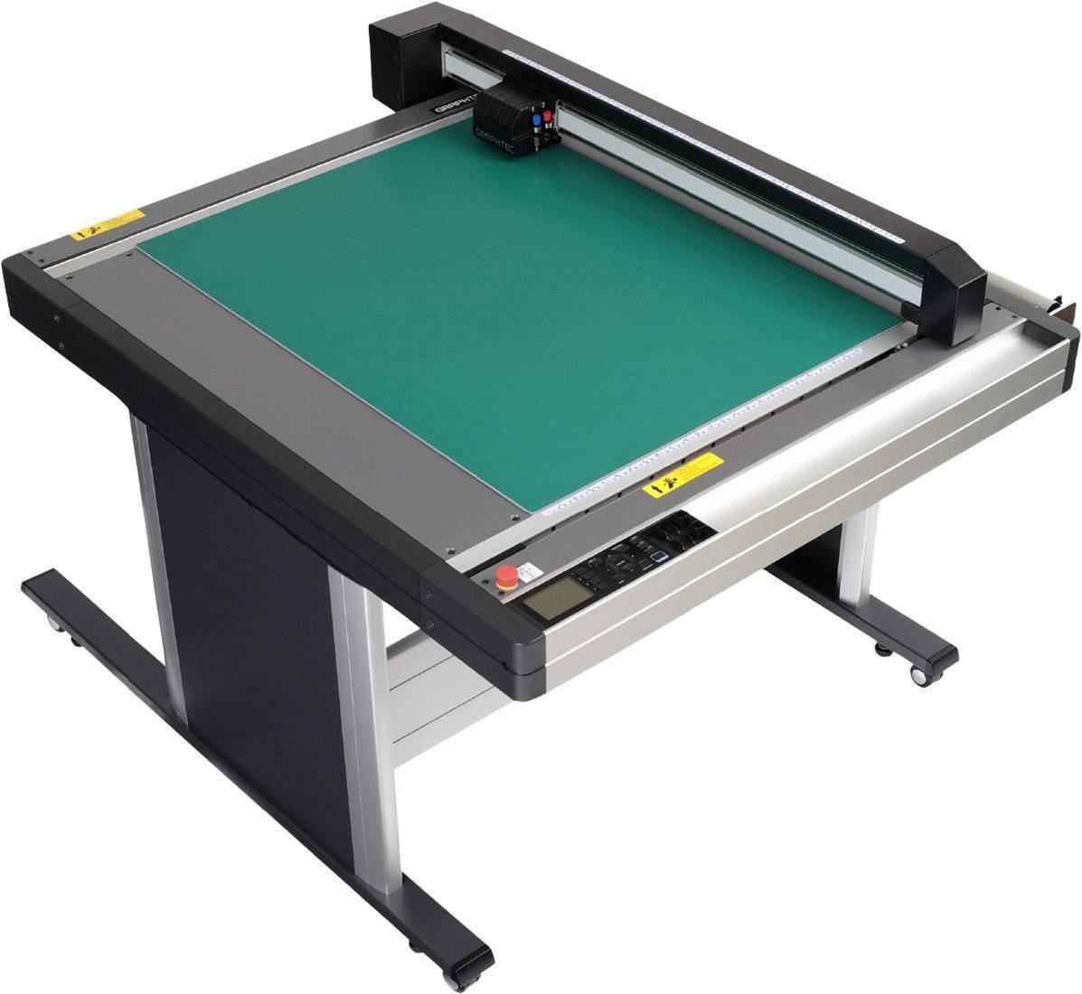 Предназначен для контурной резки, изготовления шаблонов, лекал для пошива одежды/обуви, производства упаковочных материалов, пазлов без использования вырубки. Нож из легированной стали совершает «шаги» со скоростью 400 мм/сек. В наборе идет нож-биговщик, предназначенный для резки плотного картона. Настольный тип позволяет быстро раскладывать материалы для работы. За надежную фиксацию отвечает вакуумный прижим, поэтому можно использовать самые тяжелые, толстые полотна.