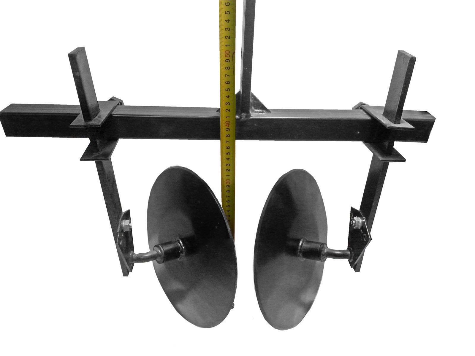 Чаще всего трудности при изготовлении этого вида оборудования могут возникнуть при формовке дисков, поэтому лучше использовать готовые от старой сеялки. При разработке конструкции следует помнить,что диски должны располагаться симметрично и устанавливаются под углом. Для соединения деталей используются болты, хотя иногда проще применять сварку.