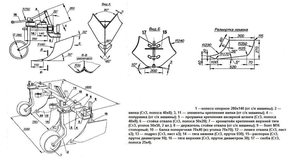Приступая к работе, сперва следует сделать чертёж окучника дискового типа, руководствуясь подробной схемой сборки и проставив точные размеры.