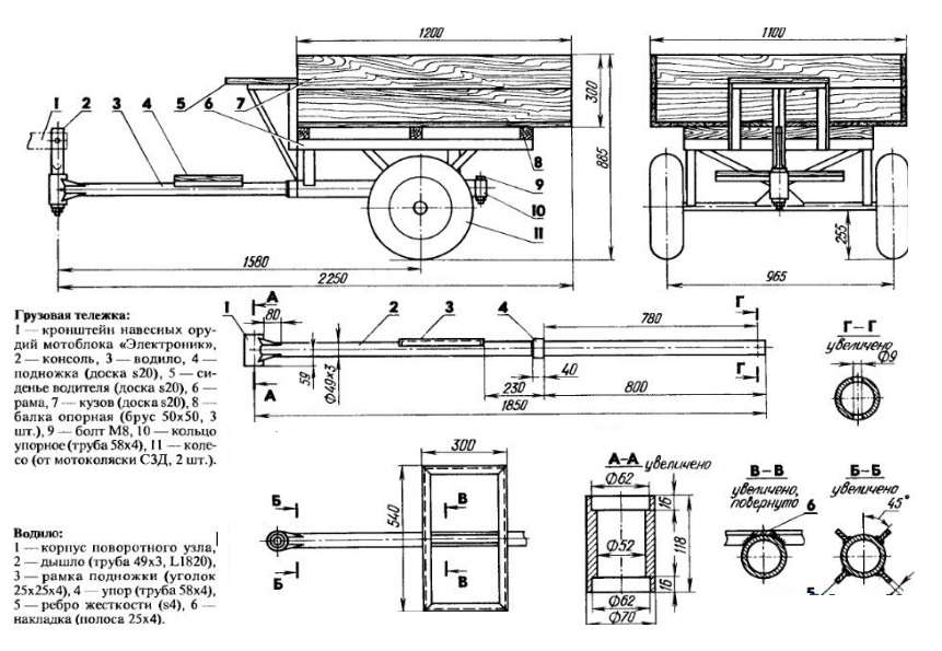 Сам кузов не потребует особых знаний и умений при выполнении. Главное, определиться с размерами телеги на мотоблок.