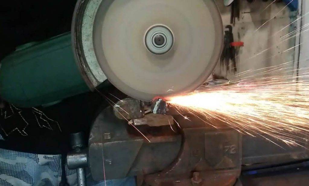 - Торец изделия стачивается при помощи насадки с крошкой и шипами, абразивного шлифовочного наждачного круга.