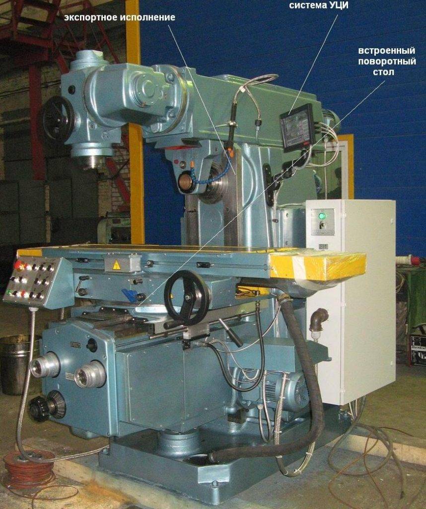 В качестве рабочего инструмента могут использоваться концевые, цилиндрические, торцевые, угловые и фасонные фрезы. Рабочие узлы находятся на станине, а коробка скоростей, приводящая в движение шпиндель, размещена внутри.