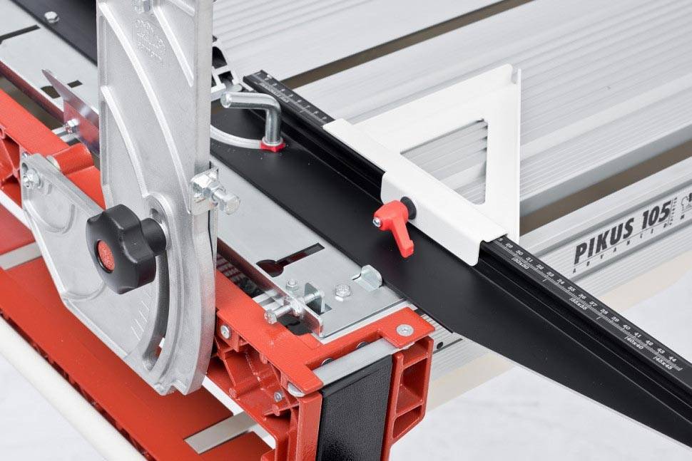 В этом плиткорезе компании Bosch предусмотрено точное положение каретки по отношению к краю плитки, изменение угла надреза с помощью угольника, есть боковые выдвижные опоры для изделий большого размера.