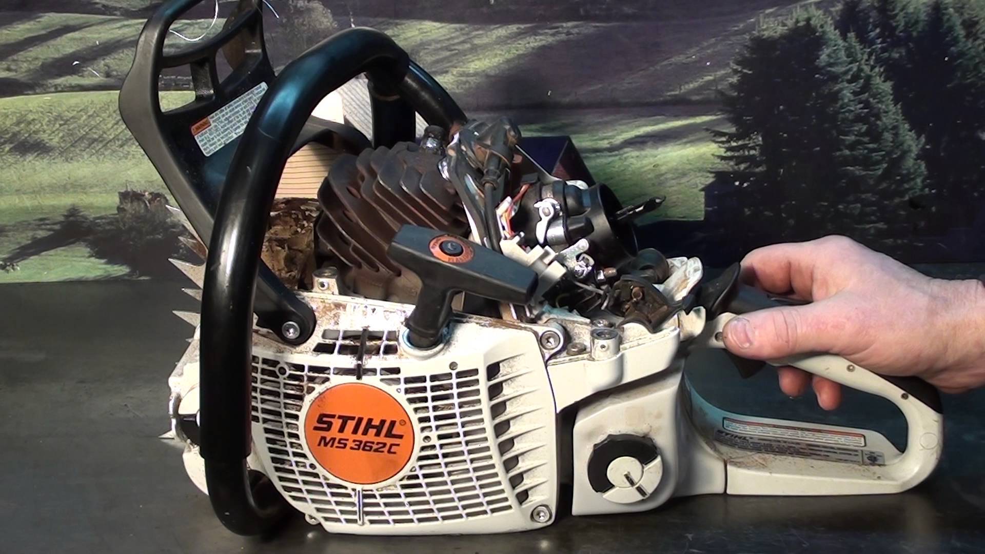 Если не удается запустить прогретый двигатель бензопилы, тогда следует поступить следующим образом: