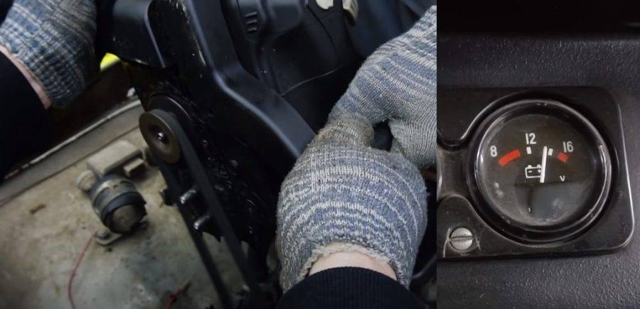 Затем ремешок натягивается в состояние, достаточное для постоянного проворачивания вала генератора автомобиля. Если авто оборудовано прибором замера зарядки, устанавливаем оптимальный режим вращения ремня генератора.