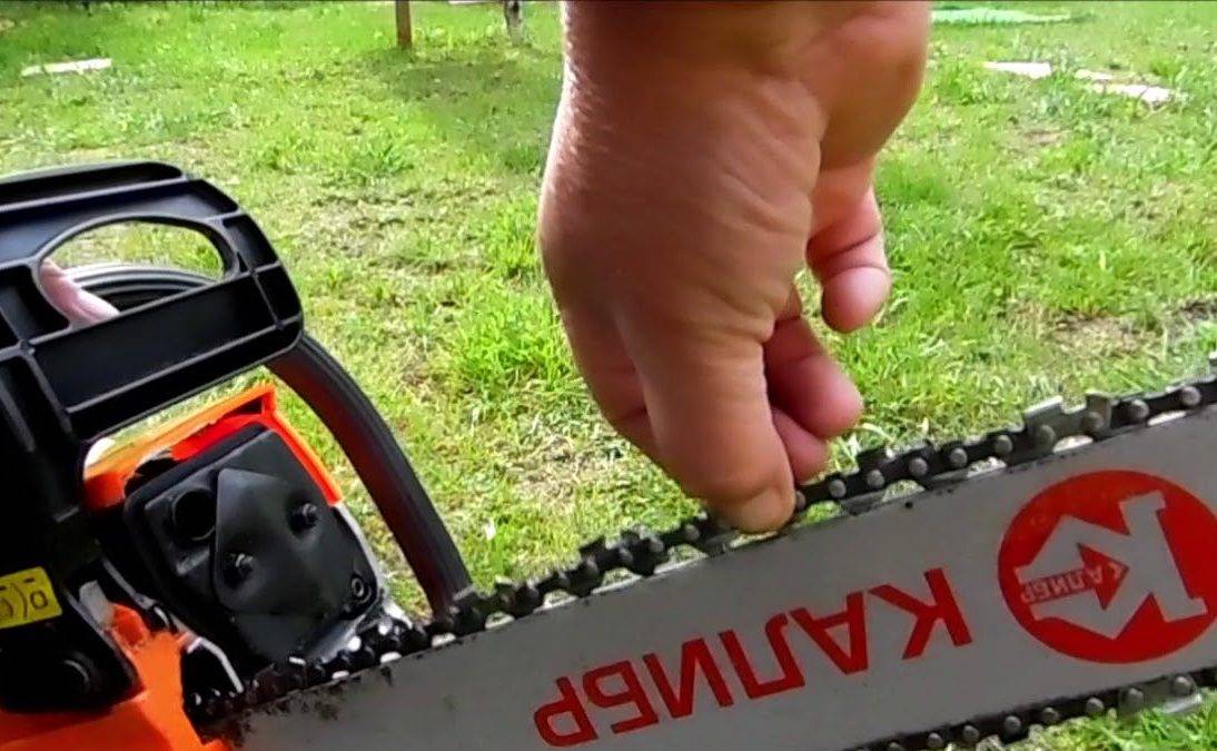 При постоянном использовании инструмента, натяжение начинает ослабевать, а цепь, тем временем, провисает, поэтому ее необходимо периодически подтягивать. Проверить натяг можно простым способом: на остывшем электроинструменте оттягивается центральная часть от шины. Если цепь не поднимается больше, чем на 3-5 мм, то все в порядке. Но если же она выходит из продольного паза более чем на 6 мм, то срочно требуется натяжка.