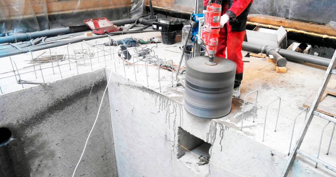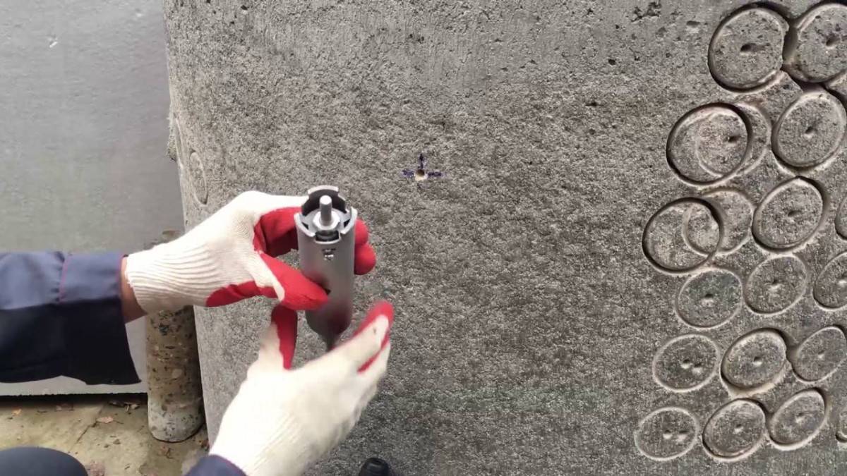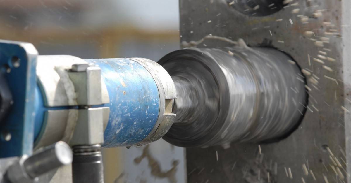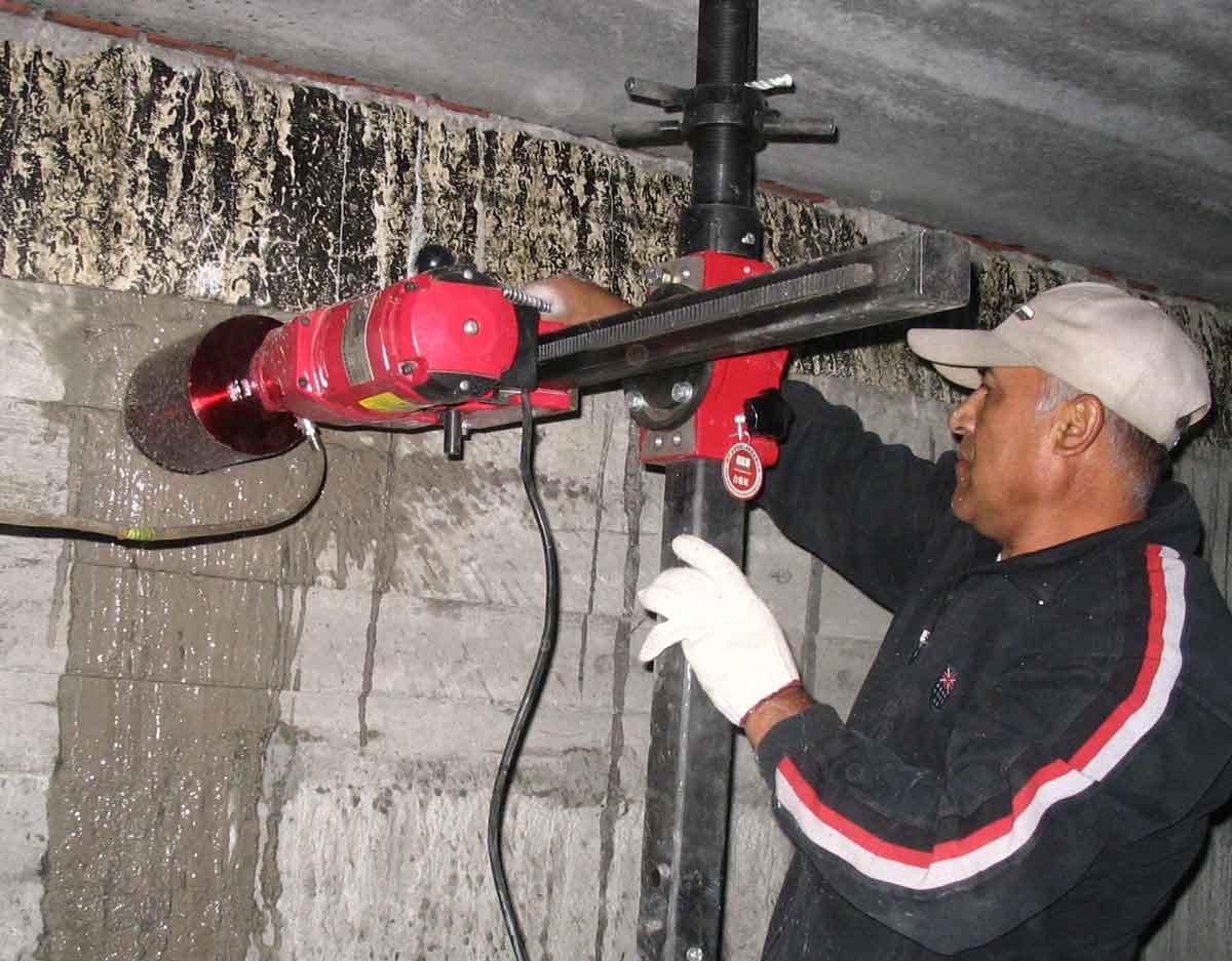 В процессе бурения бетона алмазными корончатыми фрезами сухим методом особое внимание необходимо уделять размещению стойки опоры. Поскольку даже минимальное смещение может привести к поломке элементов с напылением. Обязательным условием для обеспечения долговечности инструмента является качественная смазка