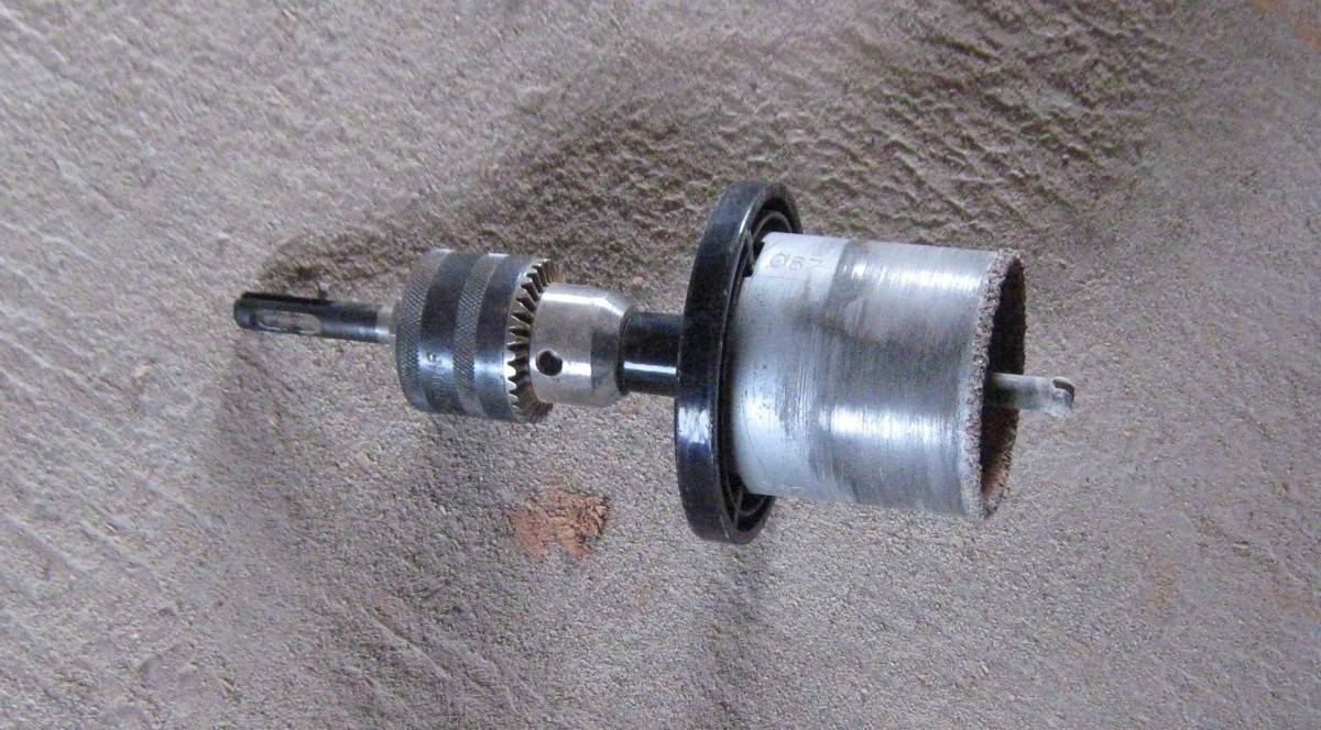 Инструмент в сборе: в центре сверло, коронка по бетону вокруг него