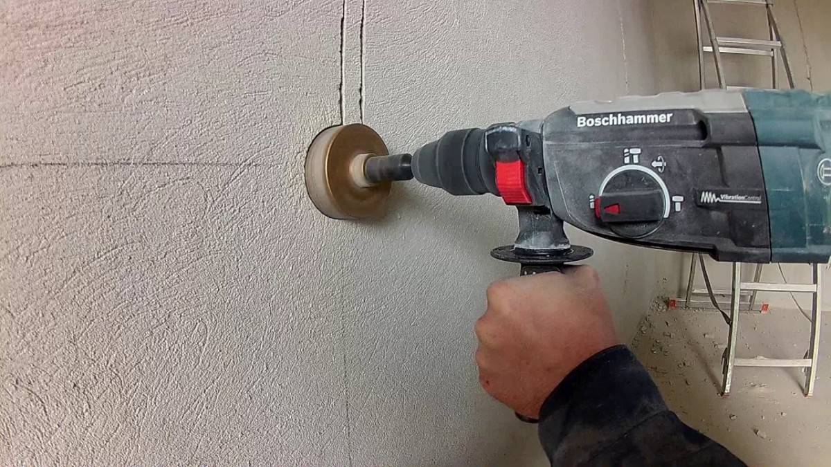 Чтобы просверлить отверстие для подрозетника, понадобится коронка и инструмент с электрическим или пневматическим приводом. Если предполагается сверление гипсокартона или дерева, достаточно будет воспользоваться электродрелью. Кирпичную, каменную или бетонную стену лучше возьмет перфоратор. Сила удара при сверлении должна составлять примерно 14 ДЖ.