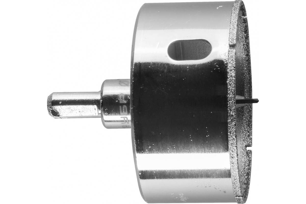 Коронка представляет собой часть стальной трубы. На торцевой ее части размещаются режущие компоненты, а с другого конца предусмотрен фланец, обеспечивающий прочное крепление в защелку вращательного привода. Более прочная фиксация обеспечивается сверлом, которое может включаться в комплект.