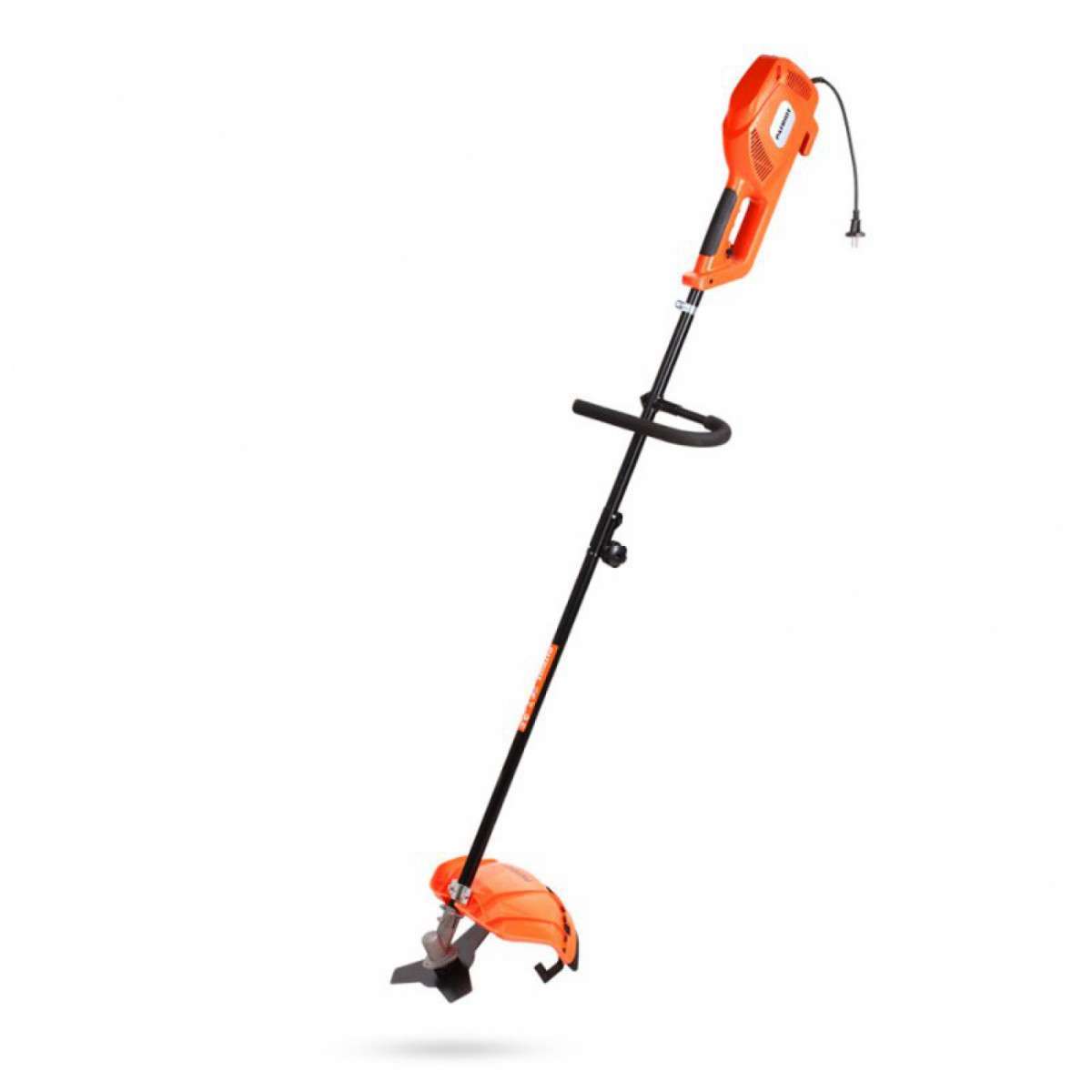 Электрический триммер подойдет для скашивания мягких и жестких упругих стеблей. Режущий инструмент – леска 2-2,4 мм толщиной или нож диаметром 23 см. Режущий нож обоюдоострый, не подлежит заточке. Ручка – J-образная, дополнительная рукоятка устанавливается на нужную высоту в зависимости от роста оператора. Довольно значительный вес инструмента – 6,7 кг – делает его неженским вариантом. Допустимая длина удлинителя – 100 м (при сечении провода 4 мм).