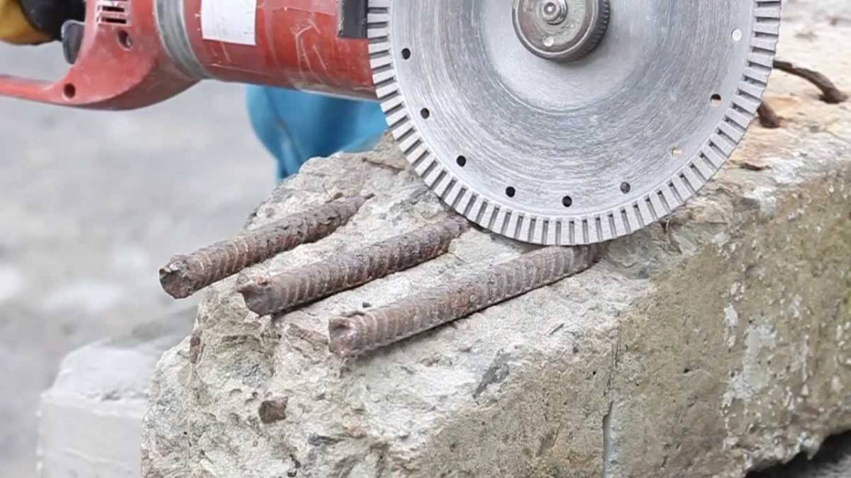 Последующий вид отрезных кругов — это специально для железобетона. Их конструкция является сегментарной, но при всем этом в зубцах имеется больше алмазов. Помните, что железобетон без помощи других резать трудно, так как болгарка греется стремительно и пыль попадает вовнутрь машины, соответственно, нужен особый защитный движок. Ручным инвентарем железобетон можно резать за один проход максимум на глубину до 10 см, потом болгарка отключится.