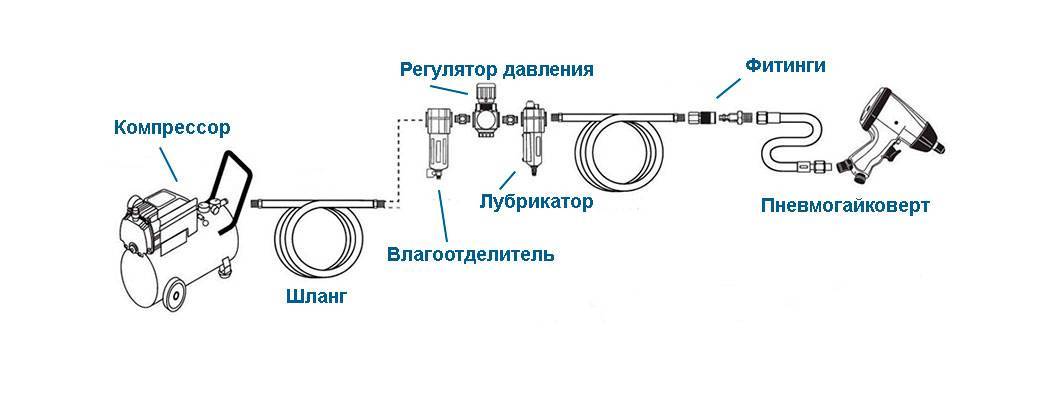 Для работы любого пневмоинструмента необходим компрессор, блок подготовки воздуха или отдельные части (влагоотделитель, лубрикатор и регулятор давления), шланги и фитинги, которые объединят всю сборку в рабочую пневмолинию. Если пренебречь очисткой и смазкой воздушного потока, то влага вызовет коррозию, а внутренние механизмы инструмента не будут смазываться, тем самым будет сокращаться срок службы инструмента, что в итоге приведет к его поломке.