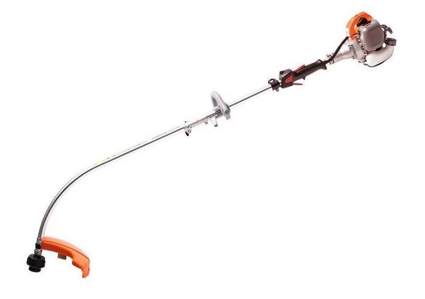 Способен срезать как обычную газонную траву, так и жёсткие стебли кустарников и молодую поросль деревьев, не говоря уже об одеревенелых стеблях многолетников. Вал неразборный, штанга нерегулируемая.