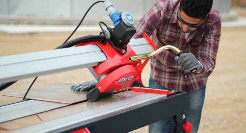 - скорость порезки. Электрический плиткорез с водяным охлаждением позволяет справиться с большим объемом работ в несколько раз эффективнее, чем обычный инструмент для порезки плитки;