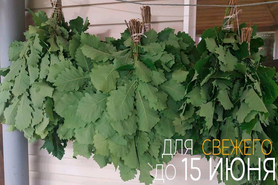 Качество, прочность и аромат напрямую зависят от срока заготовки дубовых веников для бани. Если их собрать раньше времени, то они будут мягкими и склизкими. Правильно собранное сырье крепкое и прочное в использовании.