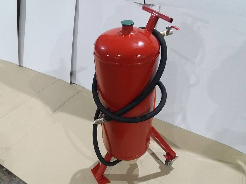 - Понадобится емкость, в которой будет смешиваться абразив с воздухом. Подойдёт пустой газовый баллон.