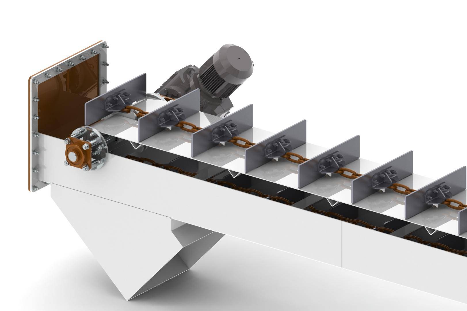 Скребковые конвейеры обычно используются для транспортировки сыпучих или кусковых грузов на расстояние не более 100 м. Для этого предусмотрены специальные скребки, которые движутся по трубе или желобу. Недостатками данных устройств является быстрый износ желоба и высокий риск измельчения транспортируемых материалов. Кроме того, из-за высокого трения они тратят гораздо больше электроэнергии.