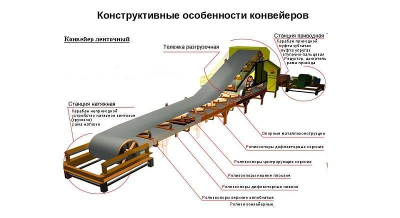 Простота рабочего принципа рассматриваемого устройства в большинстве случаев определяет его распространение. В большинстве случае главное предназначение состоит в перемещении материала или изделий от одной точки к другой. При этом во многих случаях имеется возможность автоматизировать общий процесс, благодаря чему устройство пользуется популярностью. Общее устройство конвейеров отличается следующими характерностями: