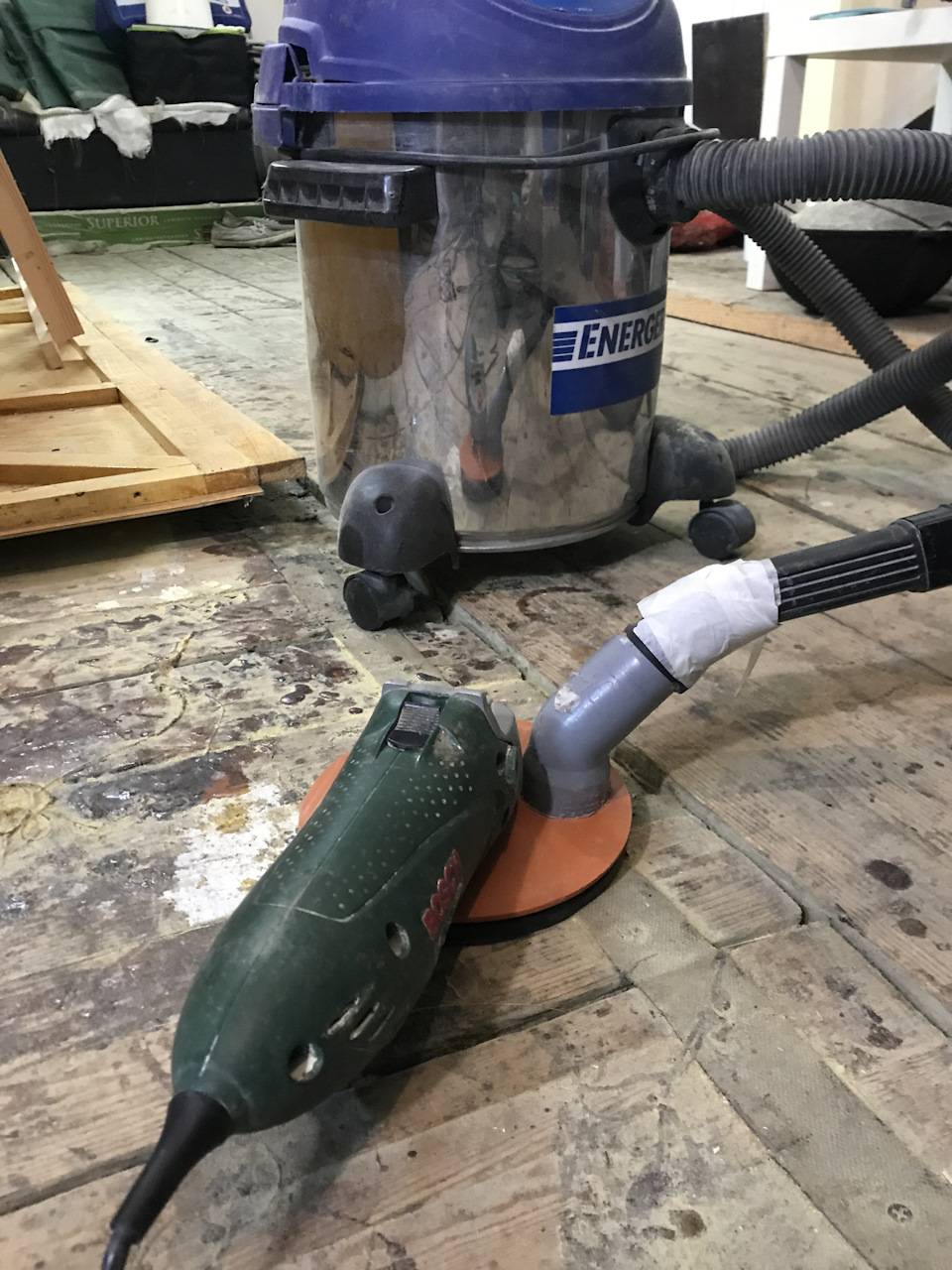 - Для циклевания деревянных полов. Этот процесс является довольно трудоемким. Он предусматривает обработку поверхностей больших площадей, после чего образуется много мусора и пыли. Благодаря защитному кожуху циклевание проходит быстро и качественно, так как мастеру не нужно отвлекаться на очистку рабочей зоны. Его устанавливают на УШМ при помощи специальных креплений.