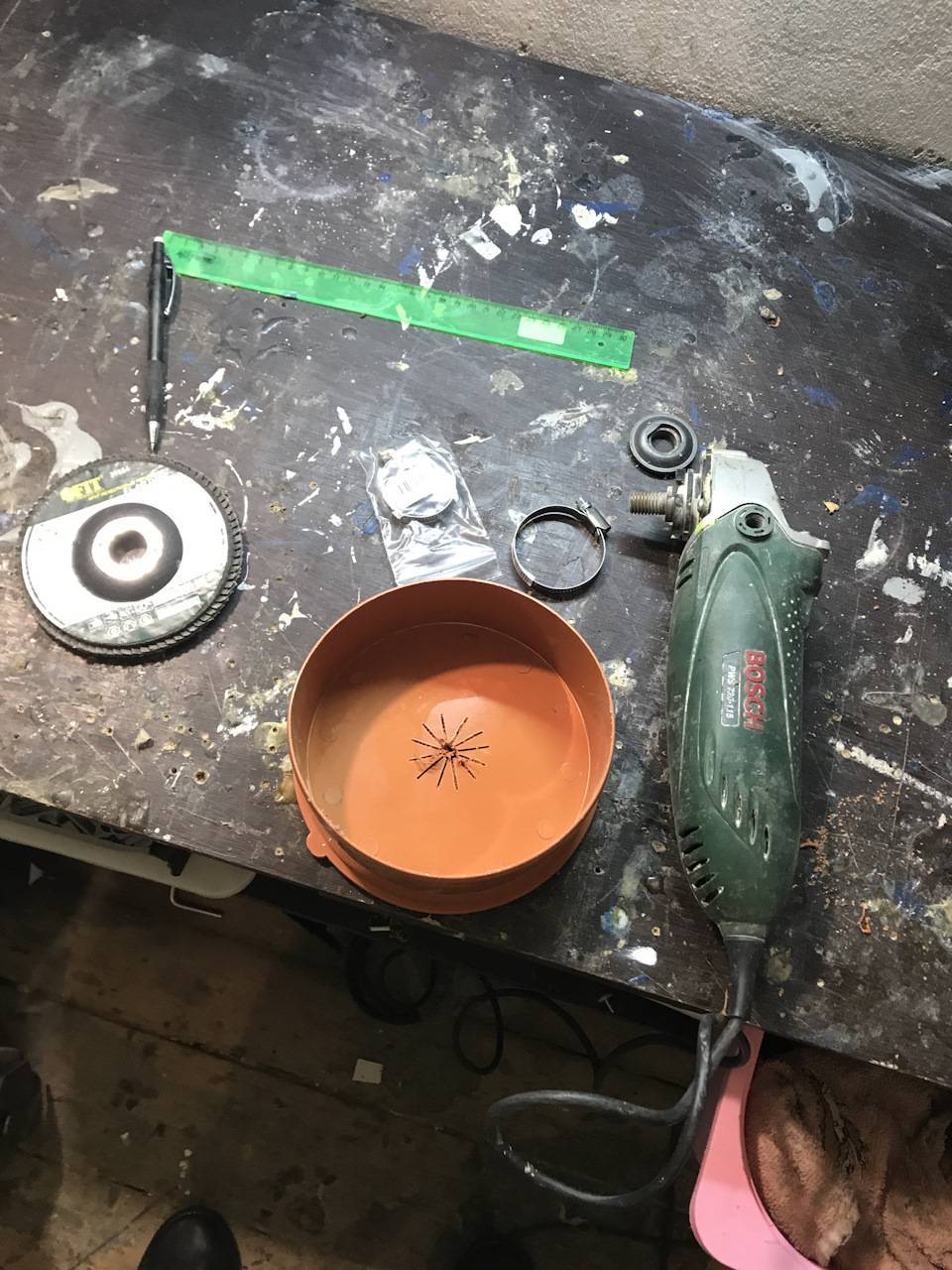 - В ней ближе к краю просверлить отверстие под патрубок.