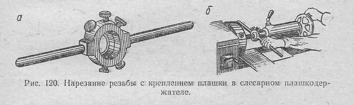 Постоянно контролируйте положения плашкодержателя по отношению к детали. Он должен находиться перпендикулярно, без наклона. Проверить правильность нарезанной резьбы можно путем свинчивания с ответной деталью или с помощью резьбового калибра.