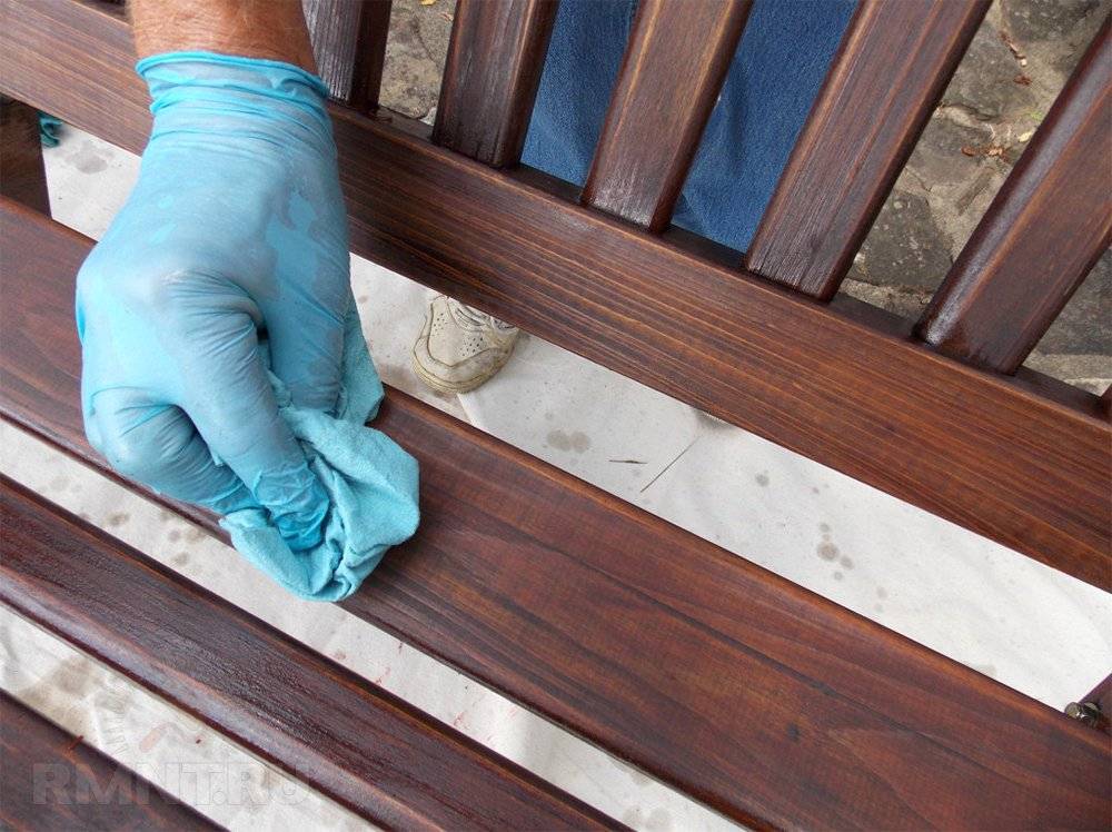 Масло должно наноситься не слишком обильно, но и не слишком тонким слоем. Найти золотую середину — это ключевой момент, иначе идеального качества вскрытия не добиться. Суть здесь примерно в том, что пока на внешнем слое масла схватывается плёнка, внутри состав ограничивается от контакта с кислородом и продолжает интенсивно впитываться. Однако способность к впитыванию разнится не только у отдельных пород, но даже на разных участках обрабатываемой детали. Чтобы в итоге масло легло равномерно, следует удалять излишки до того, как они окончательно полимеризуются.