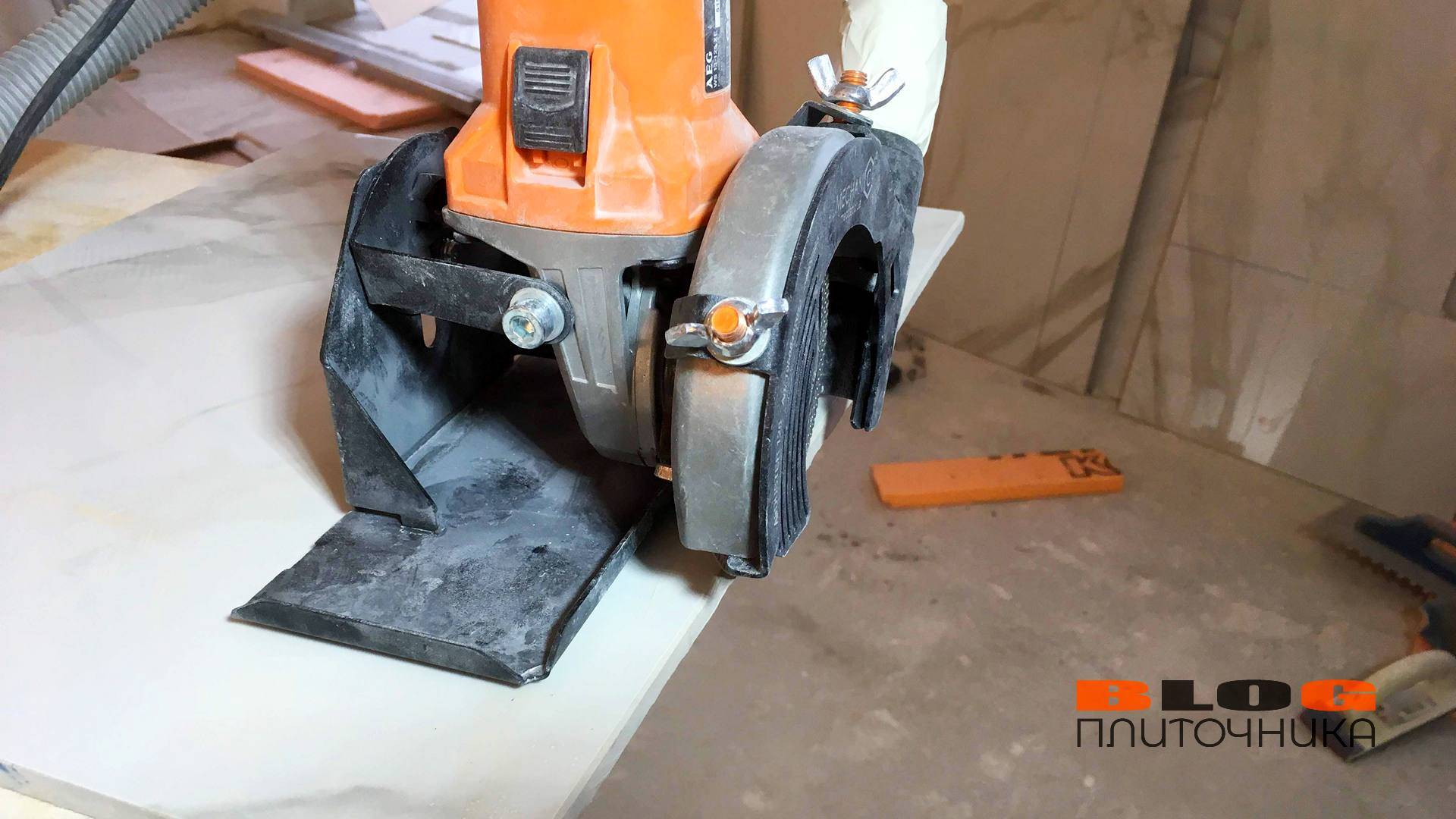 Чтобы было как можно меньше скол, болгарку необходимо держать как можно ровнее. Чтобы свести к минимуму в плане угла наклона человеческий фактор можно использовать специальные насадки.