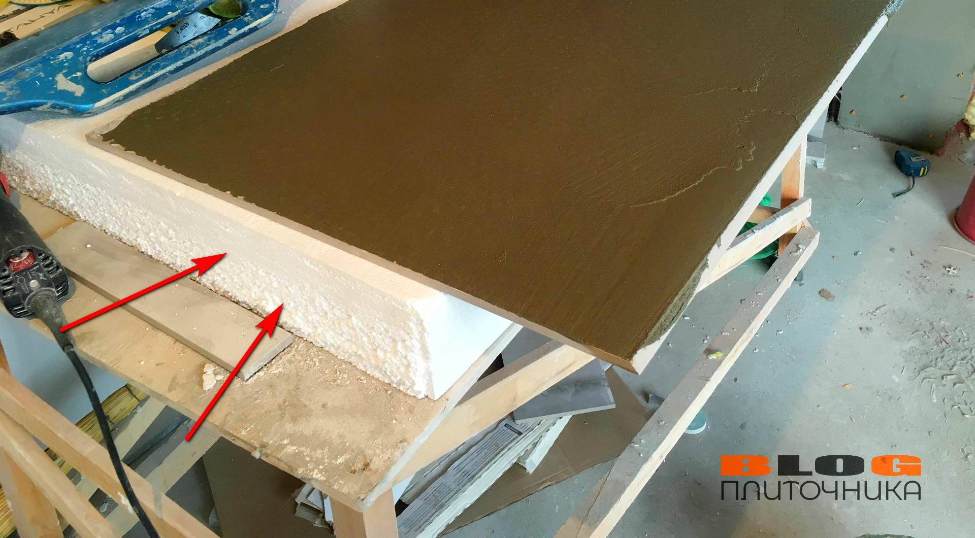 - Выбирается ровная устойчивая поверхность для надежной фиксации плитки. Под нее рекомендуется подложить тонкий слой пенопласта.