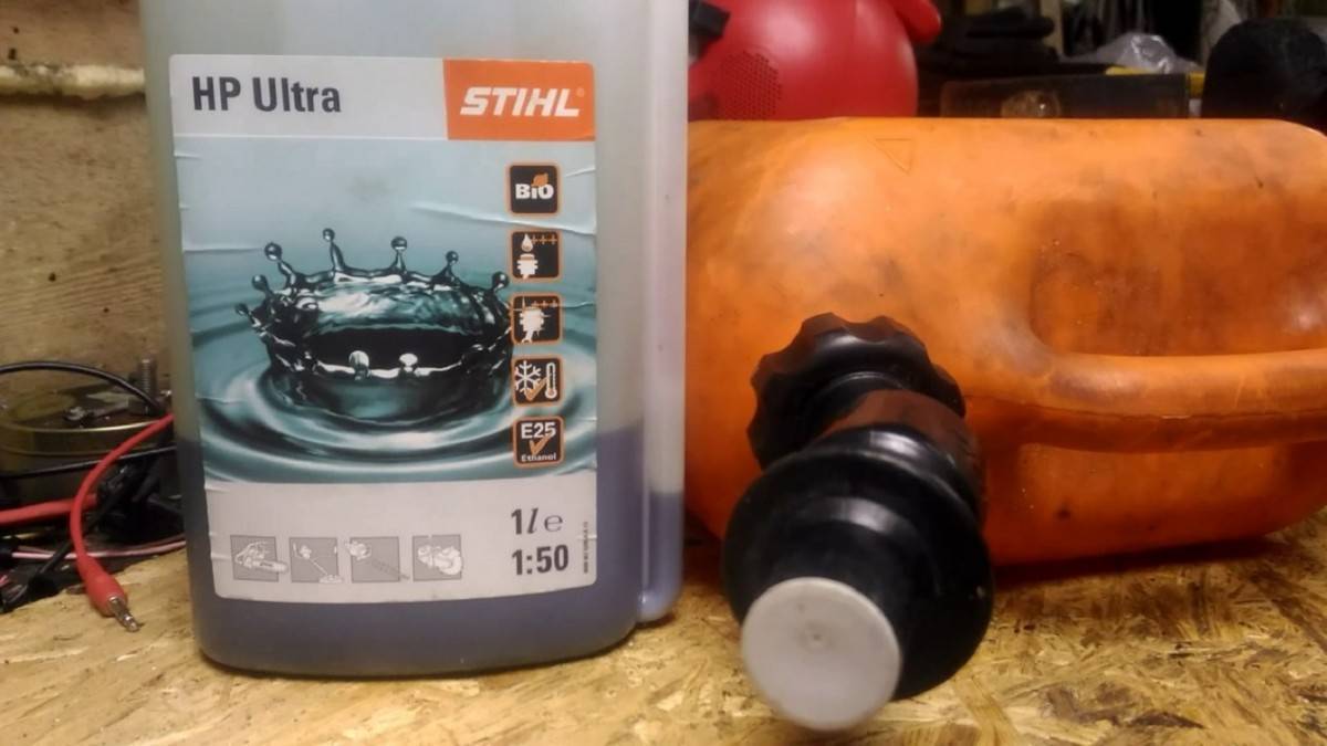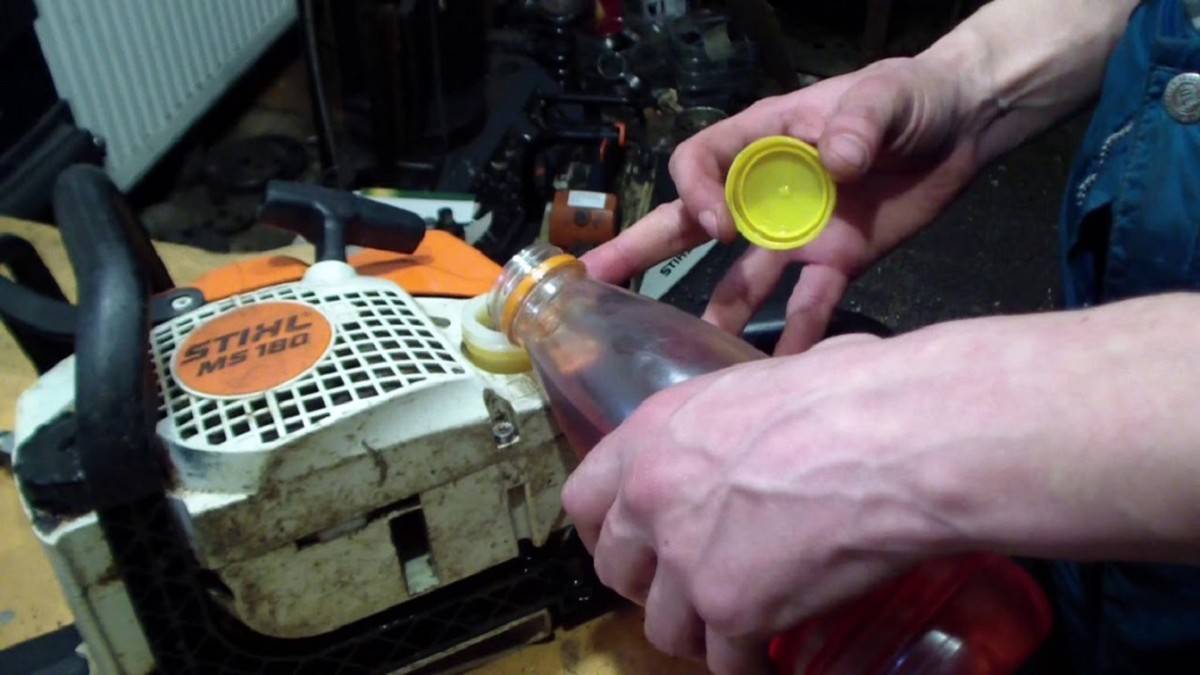 Топливная смесь для пил Stihl готовится путем смешивания высокооктанового бензина и масла для двухтактных двигателей. Пропорция масла и бензина для бензопилы такова: если мощность агрегата не превышает 1,5 кВт, то соотношение будет 1:40 (т. е. 25 мл масла на литр бензина), а при мощности выше этого значения — 1:50 (20 мл на 1 л).