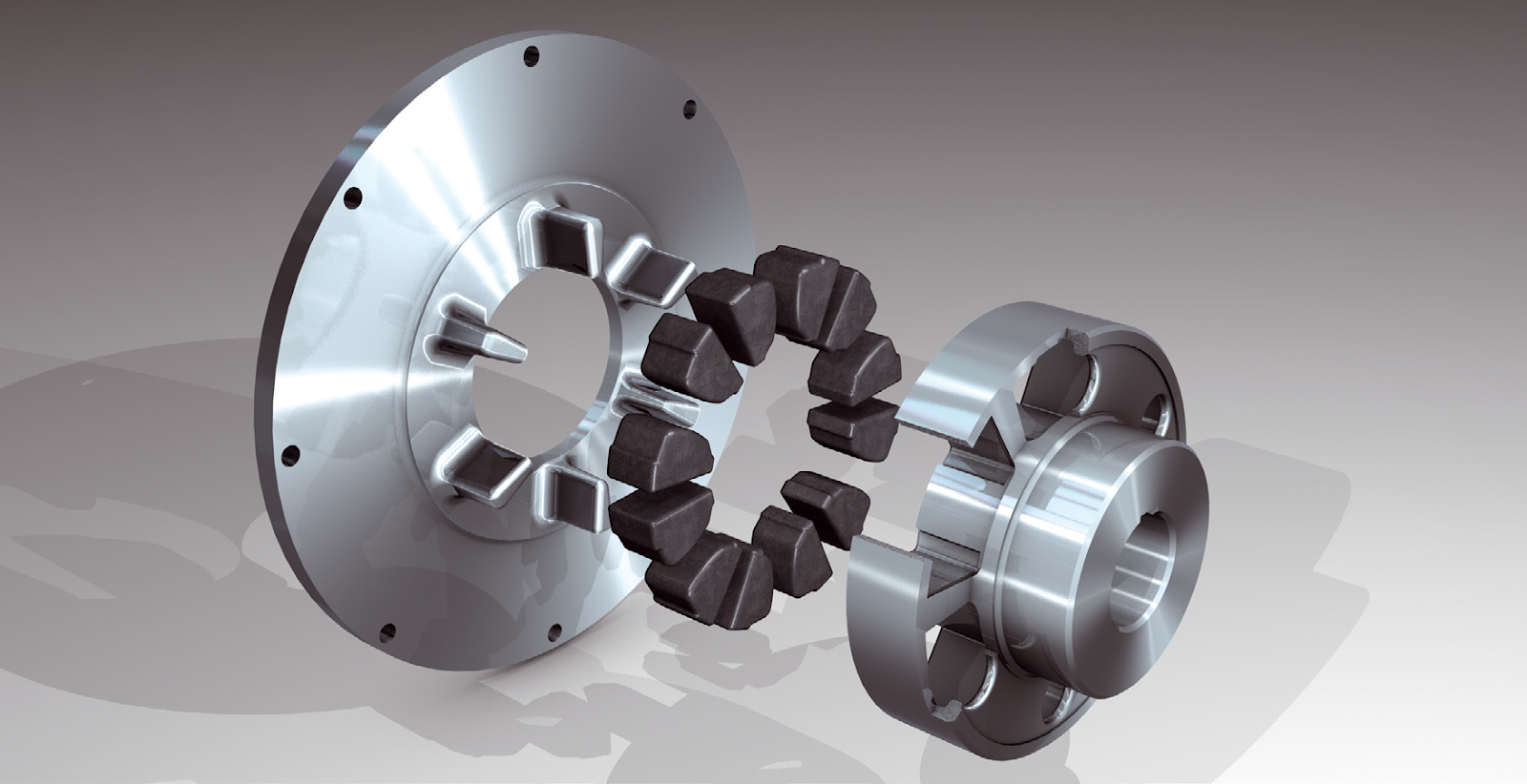 Механический импульс в таких системах транслируется между полумуфтами через посредство упругой детали. Не всегда для ее изготовления применяют резину и пластмассу с эластичными свойствами. Нередко подходящим материалом оказывается пружинная сталь. Упругий блок при работе деформируется. Стоит отметить, что деформация связана отчасти еще и со сдвигом полумуфт между собой.
