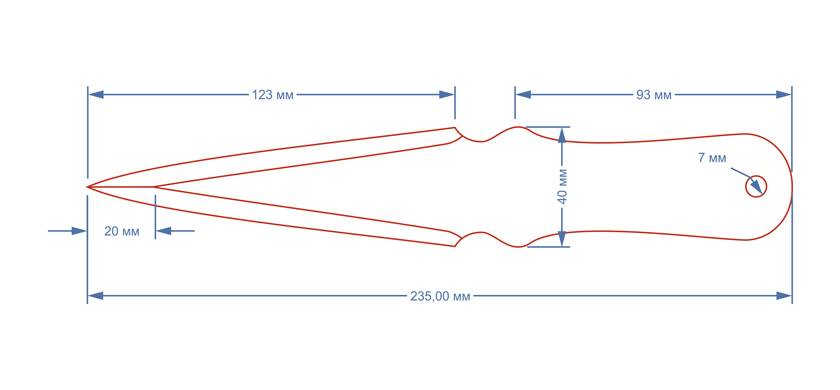 Стоимость метательных ножей в сети различна. Но если ты решил освоить данную науку, тебе понадобиться не один нож, а как минимум пять. Считай сам, сколько денег у тебя на это уйдет. Есть возможность сделать метательный нож самостоятельно? Сложного здесь ничего нет! Обрисовал для тебя самые популярные модели и указал все размеры. Качай чертежи метательных ножей, пользоваться ими научу.