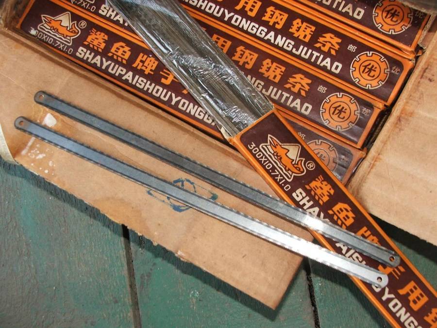 - Предел прочности разрезаемого металла. Если инструмент предполагается задействовать для разделения мягких, пластичных металлов – меди, алюминия и пр., то целесообразно иметь ножовочное полотно с наименьшей твёрдостью. Материалом может быть принята сталь Х6ВФ; у полотен импортного производства на боковой плоскости имеется обозначение HCS. Для разрезания более прочных металлов подходят полотна из быстрорежущих сталей (соответствующая импортная маркировка – HSS).