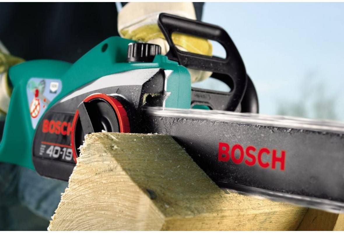 Считается, что у этих пил, компактных и удобных, довольно доступные цены, если их отождествлять с качеством. Двигатель мощностью 2000 Вт. позволяет достигать значительной скорости вращению цепи. Длина шины (35 см.) уступает многим аналогичным техническим экземплярам. Зато к плюсам добавляется экономичное потребление масла с хорошими отбойниками на 2 ручках. Сборка в компактном, прочном корпусе. Подавляет отношение к электромеханизму масляные протечки, которые несвойственны знаменитому Bosch. Чтобы на цепь поступила смазка, пила должна с минуту отработать в холостом режиме, при этом масляный расход не регулируется.