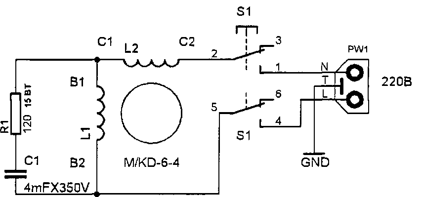 Схема подключения двигателя дрели.
