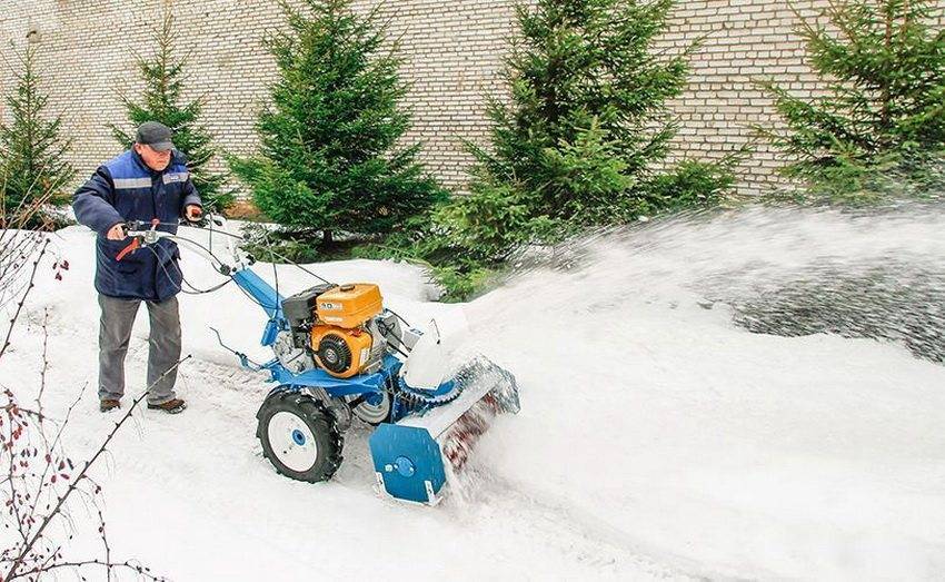 Принцип работы со снегоотвалом для мотоблока