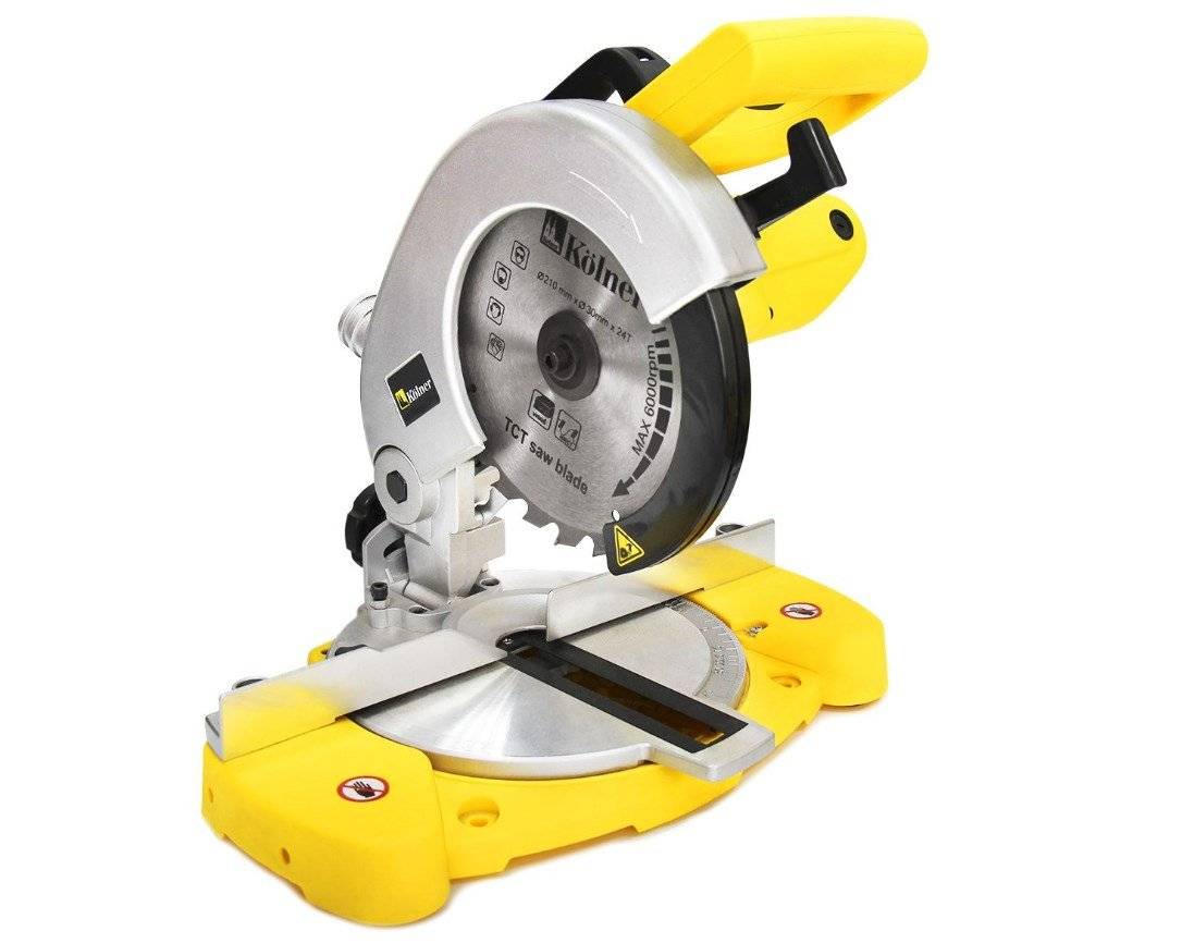 Торцерезка от китайского производителя. Отличается скромными показателями, но и невысокой ценой. Может пригодиться при проведении ремонтных работ, например, при установке межкомнатных дверей или домашнему мастеру для частного использования. Хорошо заменяет ручной инструмент, при покупке доплата будет совсем небольшой. Обладает следующими характеристиками: мощность 1300, диаметр оснастки — 210, скорость вращения – 5000, возможен поворот стола и наклон пилы на 45°. Пользователи отмечают, имеет небольшой люфт, который практически не сказывается на точности пропила. Для облегчения обслуживания — быстрый доступ к щеткам. Для защиты от несанкционированного включения, есть блокировка пусковой кнопки.