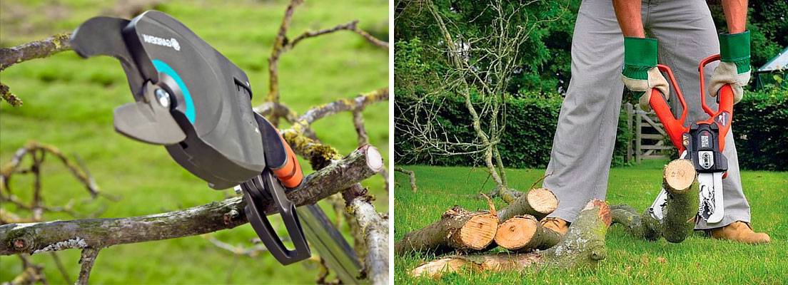 Сучкорез приводится в действие вручную или с помощью механизма, работающего от бензина либо от электричества.