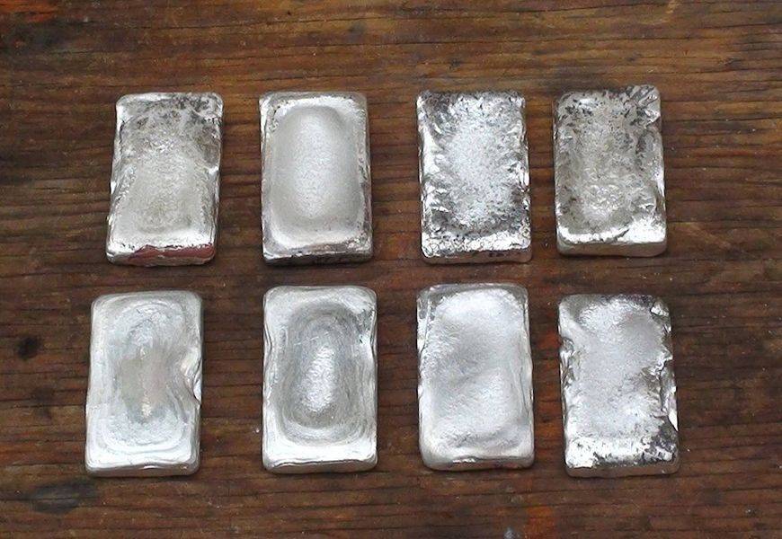 Переплавленные серебряные слитки