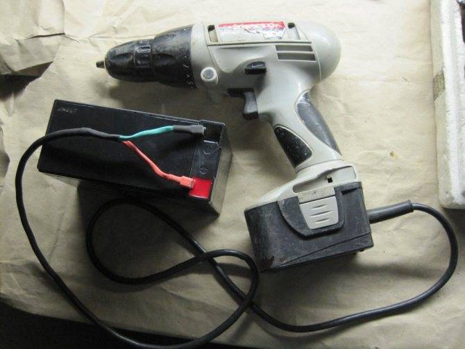 Если надо воспользоваться шуруповертом, можно подключить его к внешнему аккумулятору. Для этого идеально подойдет АКБ от любого ненужного ИБП. Чтобы подсоединить инструмент, надо сделать следующее: