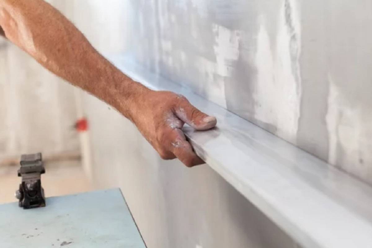 - Внутренние и внешние углы ровняют в последнюю очередь. Для этого используют специальный шпатель или короткое метровое правило.