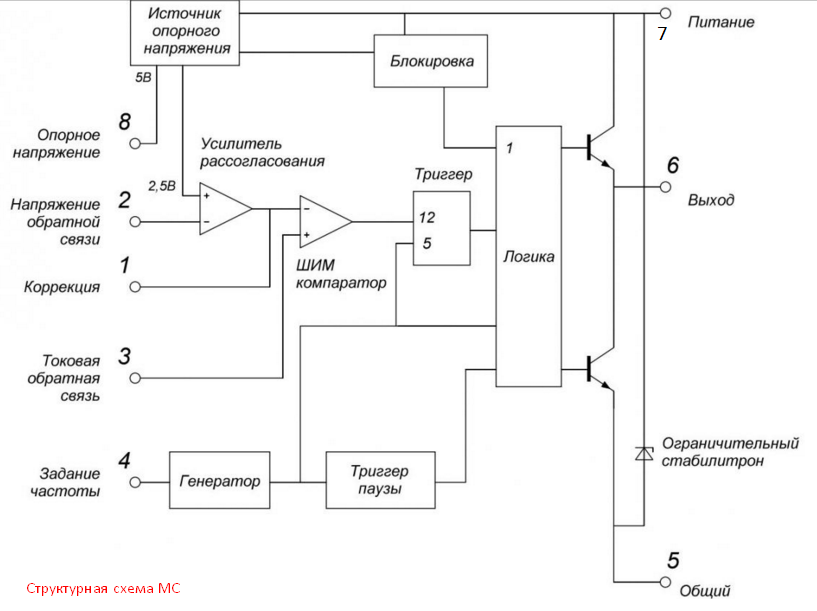 Изменяя напряжение на микросхеме имейте в виду, что ниже 10 В микросхема отключается, и включится при 15-17 вольт. Не следует повышать напряжение питания МС выше 34 В Внутри микросхемы стоит защитный стабилитрон и при сильно завышенном напряжении его просто пробьёт.