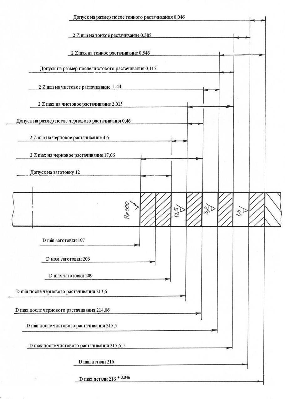 По результатам расчета строится схема расположения полей припусков и допусков на размер Ø216 Н7 (+0,046) (рисунок 2.4).
