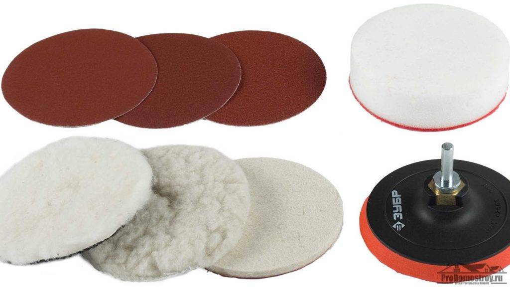 Полировальные. Данные изделия употребляются для полировки поверхностей. Чаще всего их применяют после шлифовки. К этой группе можно отнести следующие разновидности дисков: войлочные, фетровые, а также наждачный круг. Для их фиксации на инструменте используется липучка, поэтому их очень легко менять.