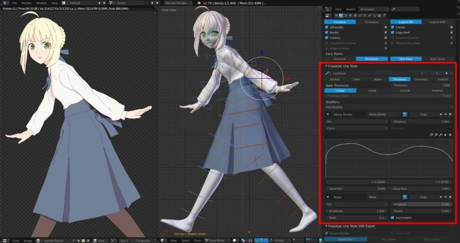 Благодаря костной системе управления, в программе можно создать полностью анимированного персонажа. Также можно сделать визуализацию объекта и при определенном освещении записать трехмерное видео.