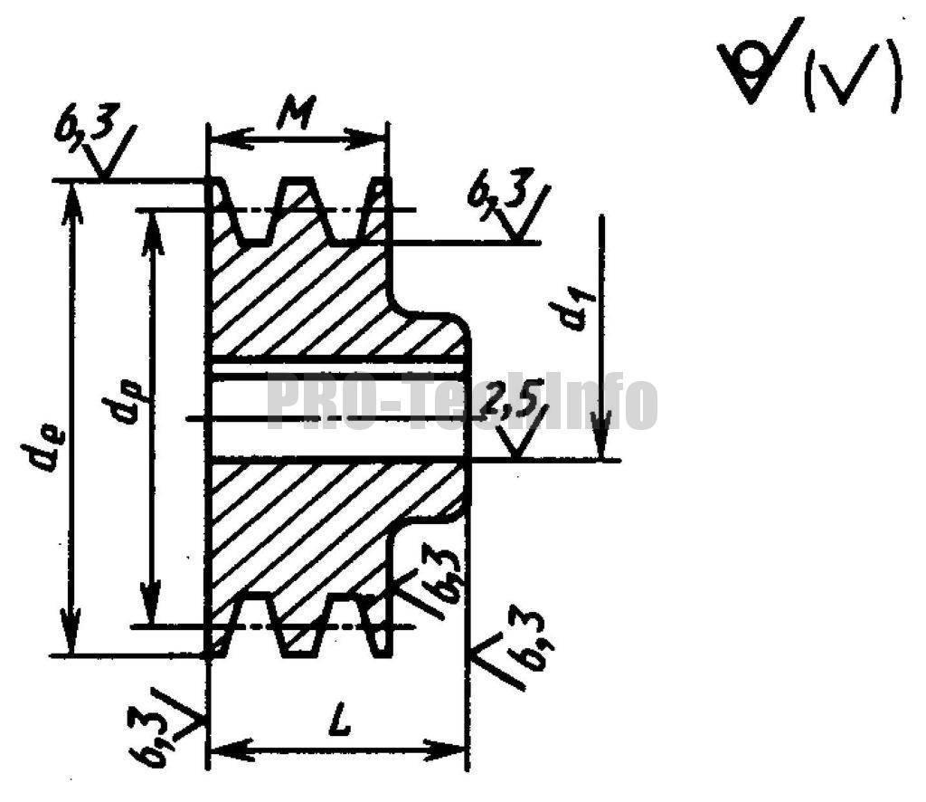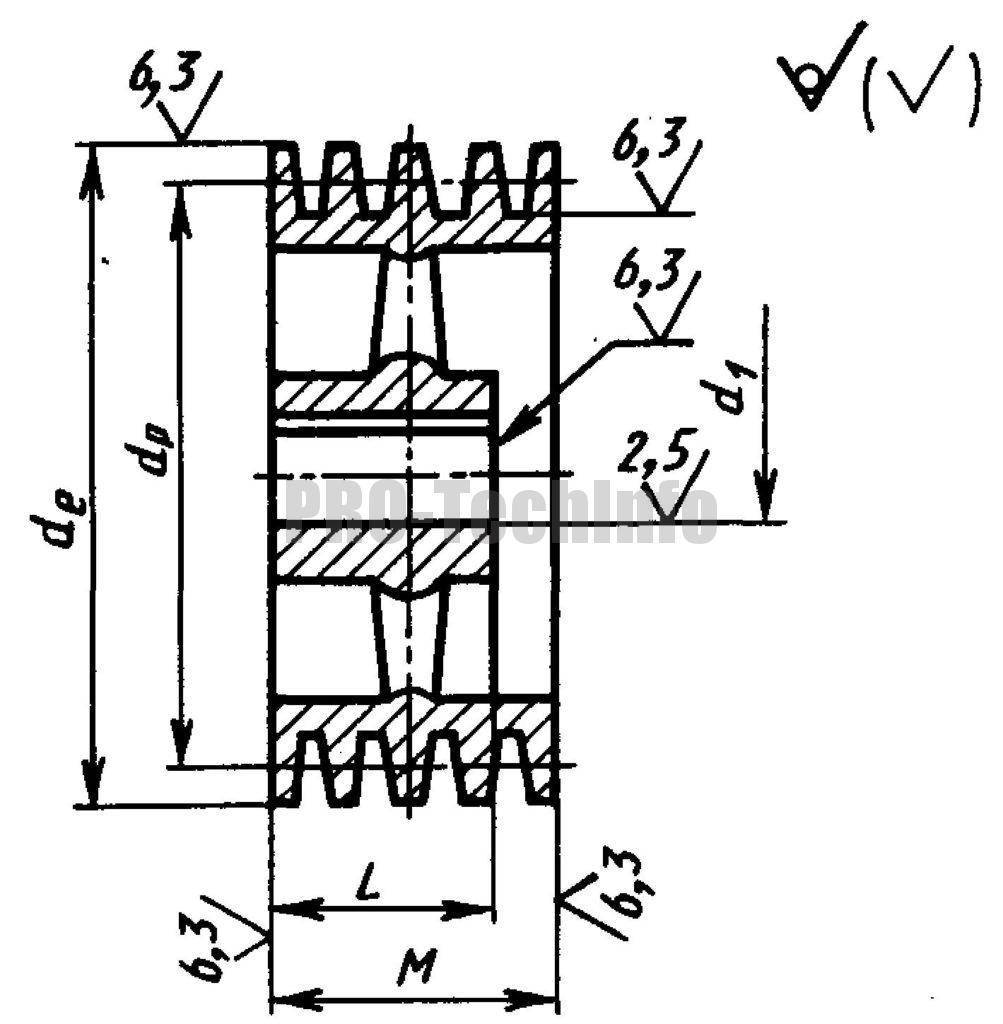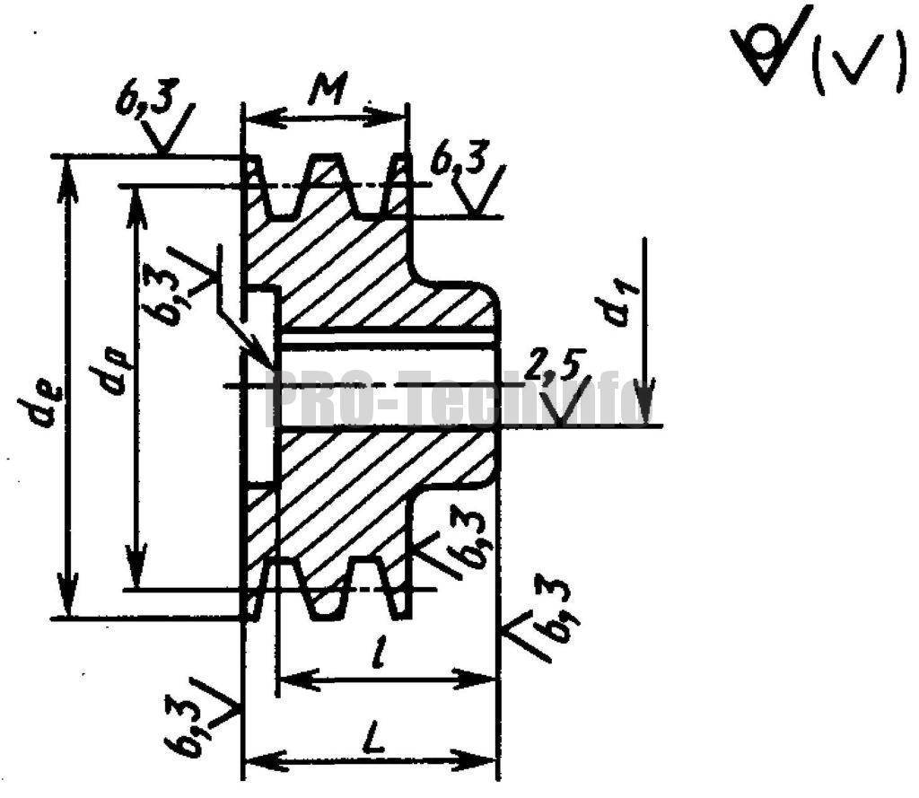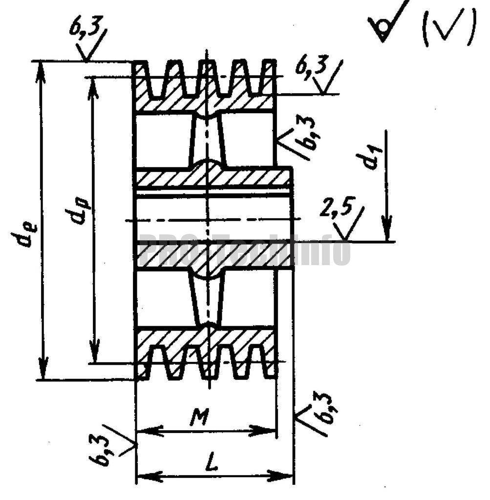 где D1 — диаметр шкива, мм; V — линейная скорость шкива, м/с; n — частота вращения вала, об/мин.