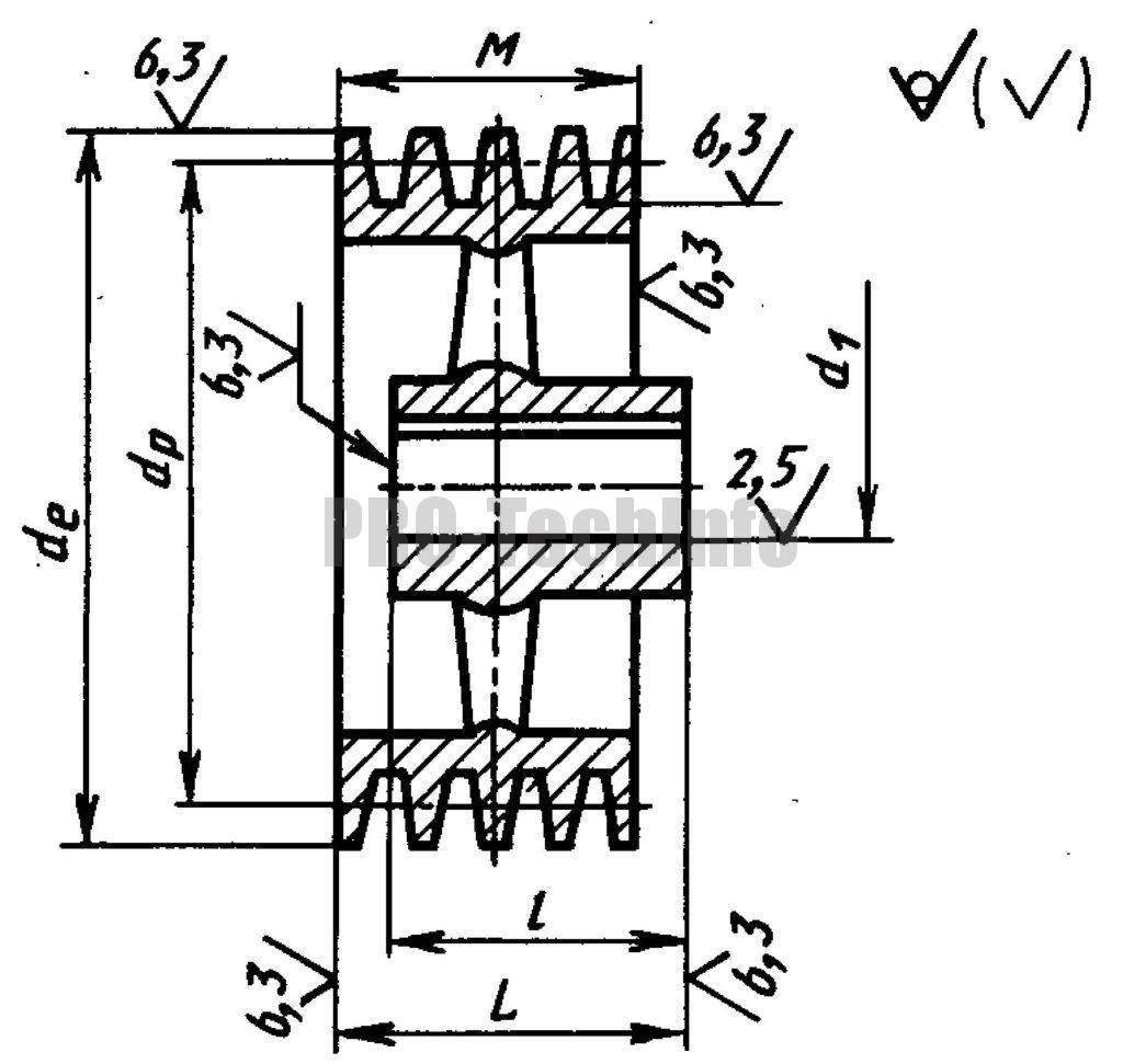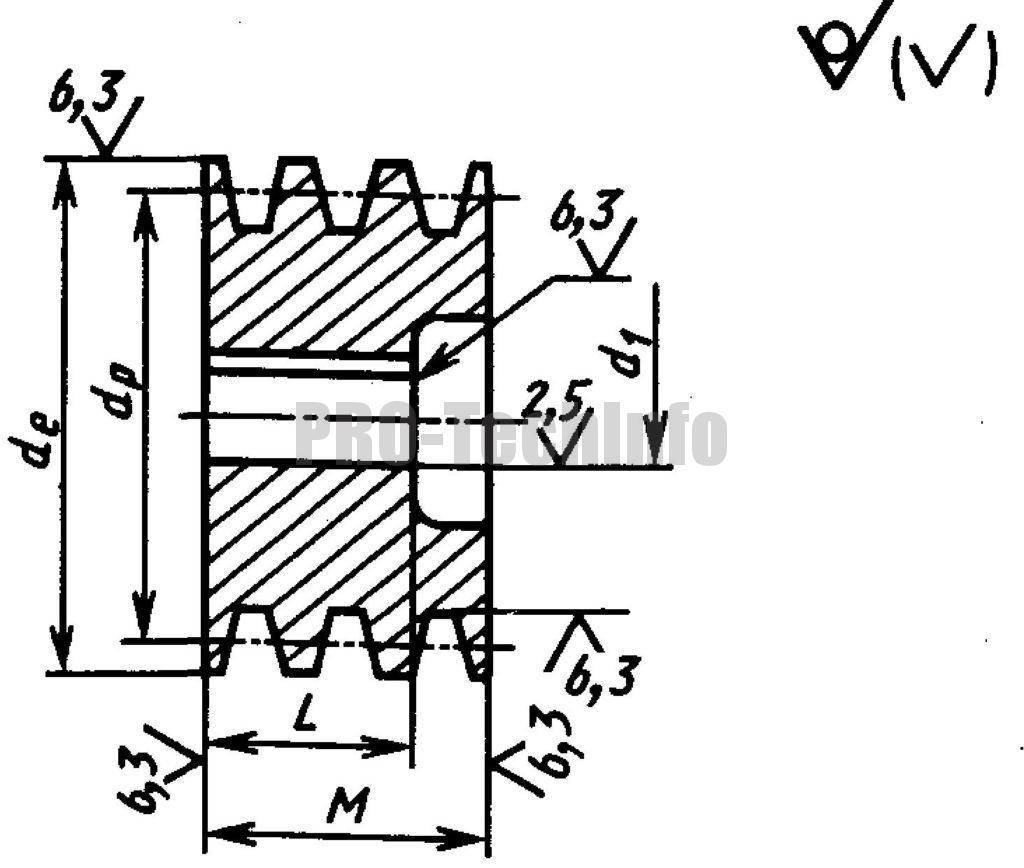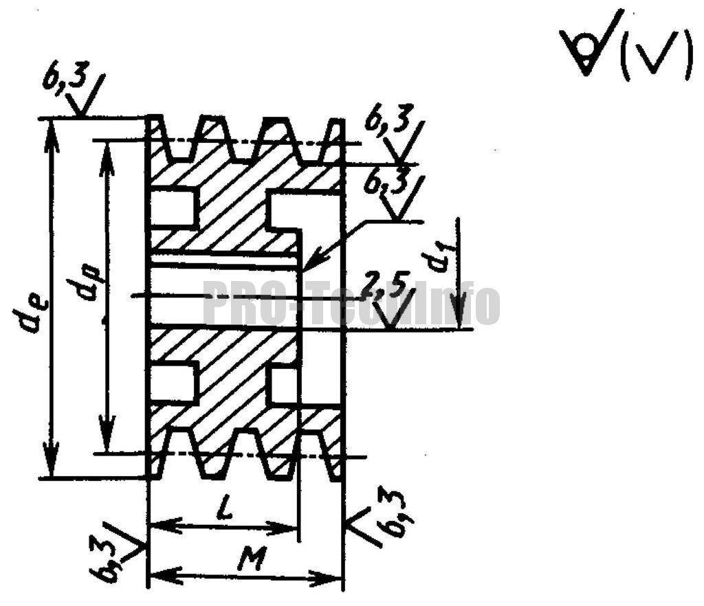 Для расчета параметров шкивов, а также привода в целом, применяются различные значения диаметров, так, для шкива клиноременной передачи используются: