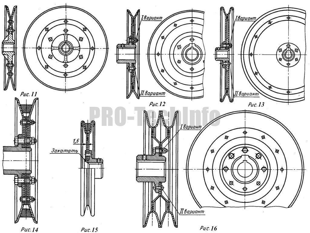 В зависимости от конструкции различают шкивы типов 1…6 (рис. 1…6) и типов 7…9 (рис. 7…9).